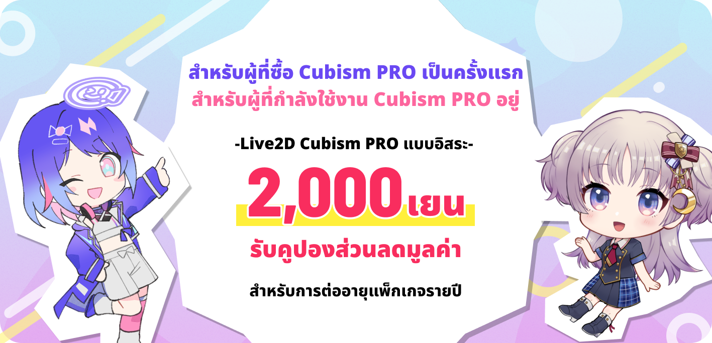 โปรแกรมส่วนลดสำหรับนักเรียน Live2D อนุญาตให้นักเรียนและคณาจารย์ในสถาบันการศึกษา (โรงเรียนประถม/มัธยมต้น/มัธยมปลาย/อาชีวศึกษา มหาวิทยาลัย ฯลฯ) ได้รับคูปองส่วนลด 76% สำหรับการสมัครสมาชิก Live2D Cubism Editor PRO ระยะเวลา 3 ปี